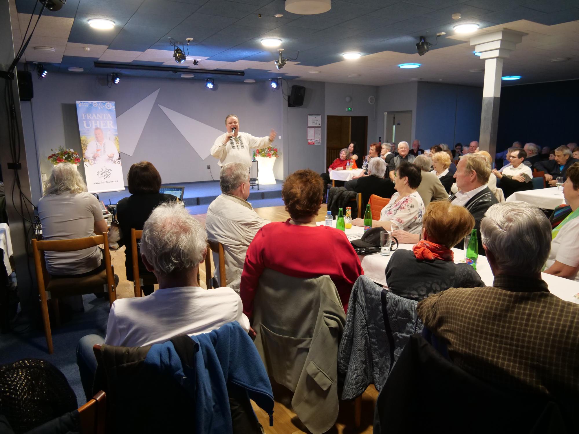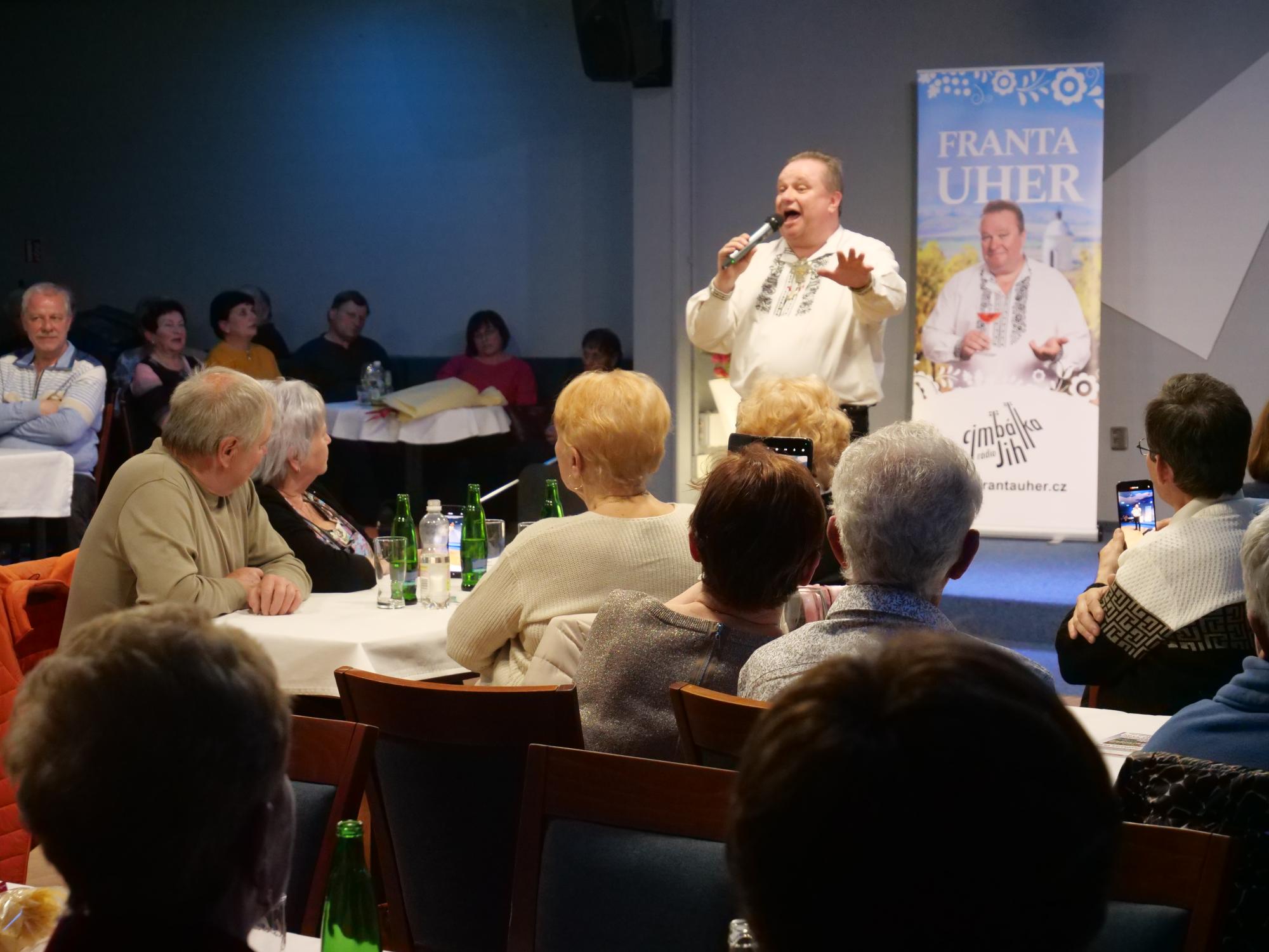 Zpěvák, muzikant, moderátor, lidový vypravěč, bavič a srdečný člověk Franta Uher s námi oslavil 40 let na hudební scéně. Večer byl plný úsměvných historek, vtipů a písniček.